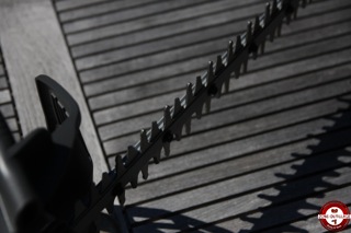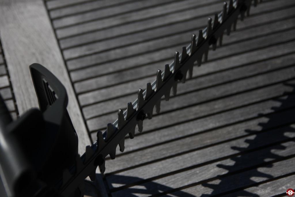 Le taille-haies RHT2660R dispose d’une lame de 60 cm double action découpée au laser et affutée au diamant, la capacité de coupe de 28 mm la situe dans la moyenne. Un choix pertinent pour obtenir des coupes nettes, car plus l’écartement des dents est important, plus l’outil coupe des branches de gros diamètres, mais avec un résultat moins net.
