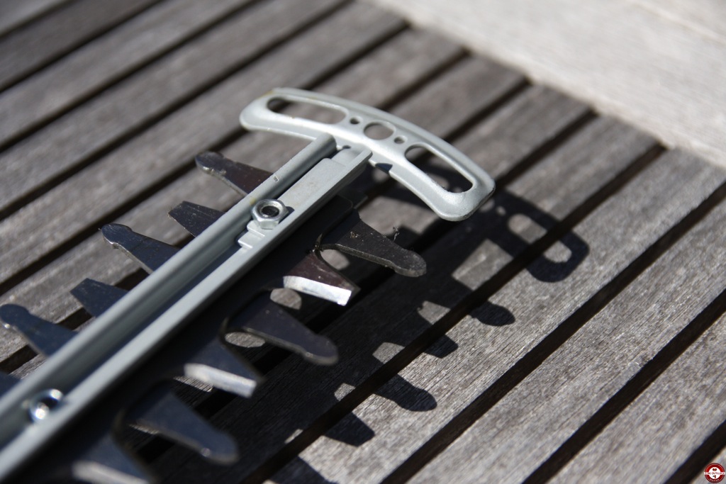 La poignée arrière 5 positions apporte un confort d’utilisation supplémentaire pour couper de haut en bas et de droite à gauche sans effectuer de mauvais mouvements. Rien à redire sur l’équilibre du taille-haies, mais le poids devient vite pénible lors d’un travail prolongé. Enfin pour le rangement, l’outil ne dispose pas d'œillet sur la poignée arrière pour le crocher au mur.