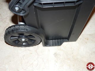 La servante roule facilement, mais on aurait préféré des roues avec un peu plus de gomme pour faciliter le transport sur les terrains accidentés. Compte tenu du nombre important d’outils que vous pouvez transporter, le poids de la servante peut vite atteindre les 40-50 kgs. Le chargement et déchargement de la servante impose de le faire à deux. Pour cela vous disposez de deux poignées latérales. Cette opération peut vite être laborieuse suivant le type de véhicule dont vous disposez.