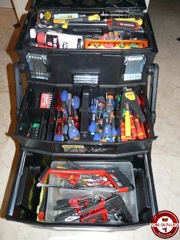 Dans la partie haute, vous retrouvez une boite à outils avec un plateau amovible. De taille convenable et rapide d’accès, vous rangerez les outils du quotidien, le plateau amovible est rigide même chargé. Dans la partie du milieu, un système de cloison amovible permet de moduler 3,4,5 ou 6 compartiments. La dernière partie, le coffre de rangement offre quant à lui un espace suffisant pour y déposer les outils plus volumineux. Au niveau du rangement, rien à dire tout est optimisé et accessible.