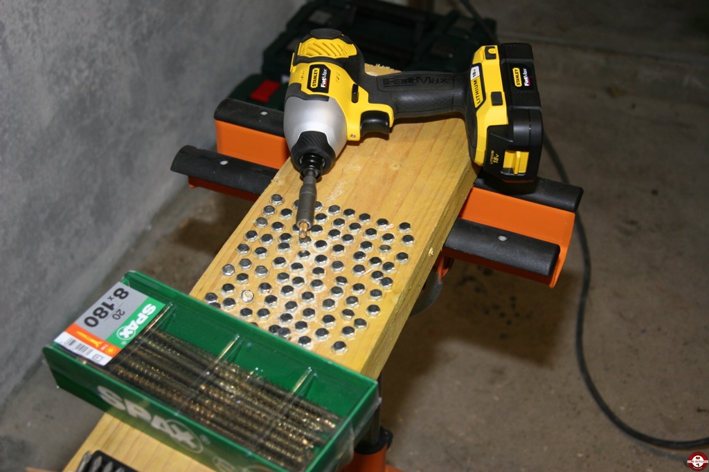 Pour le montage d’une terrasse en bois ou les vissages difficiles, la visseuse à chocs est très appréciée. Cet outil est bruyant, mais permet de visser en série de gros diamètres sans retour de couple. Nous avons testé une version semi-professionnelle la FMC640LB Stanley FATMAX.