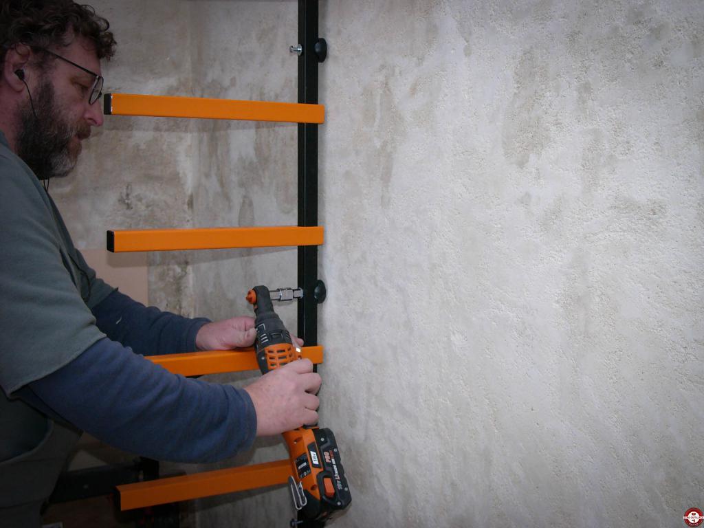 Deuxième surprise il faut repercer les trous dans les montants à 2,5 mm pour pouvoir visser les petites vis de butée. Un ensemble prêt à être vissé, nous avons utilisé des tire-fonds de 6x80 les vis de fixations ne sont pas fournies.