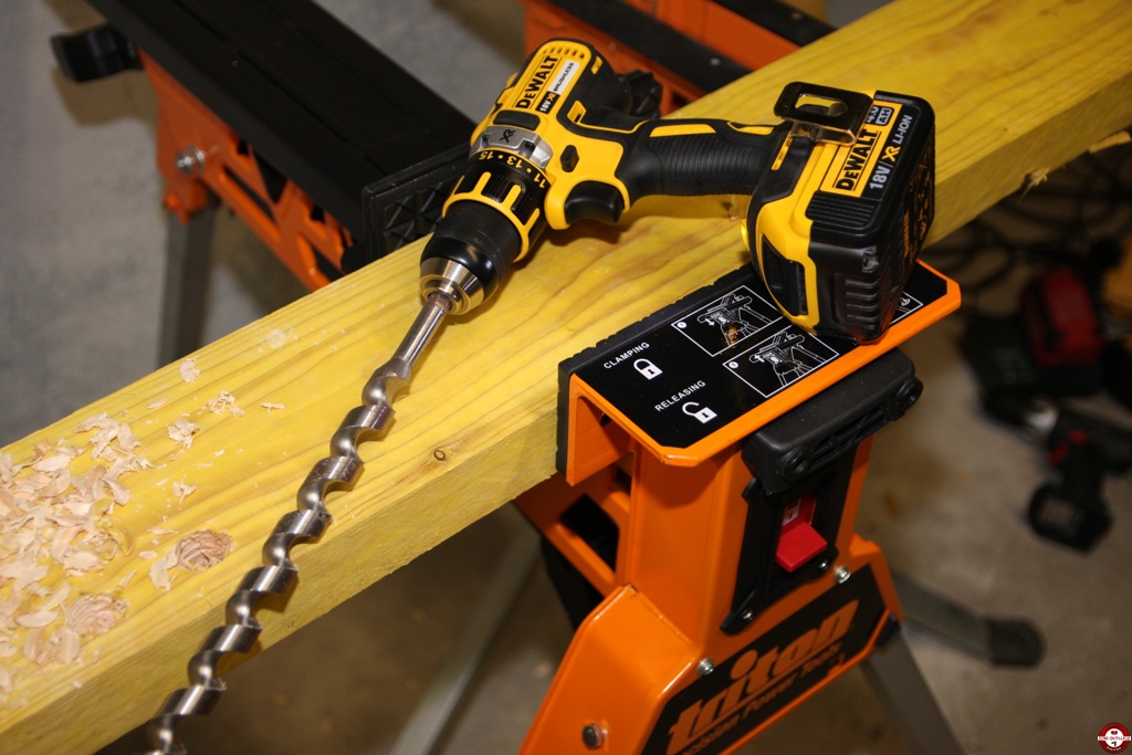 Lors de nos tests de découpage, perçage et vissage, la base tripode du superJaws XXL Triton procure une bonne stabilité.