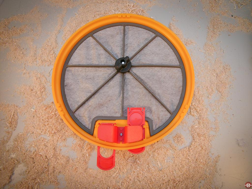 Nous avons nettoyé parfaitement la cuve de l’aspirateur avant le test pour constater qu’après il n’y a aucune poussière de passée dans la cuve de ce dernier. Le collecteur étant très léger et les tuyaux livrés d’origine peu souples il arrive fréquemment que celui-ci se renverse, pour remédier au problème nous nous sommes servis des trous prévus pour le fixer sous l’établi. Le prix moyen constaté est de 55 € TTC pour faire l'acqusition de l'accessoire DCA 300 Triton.