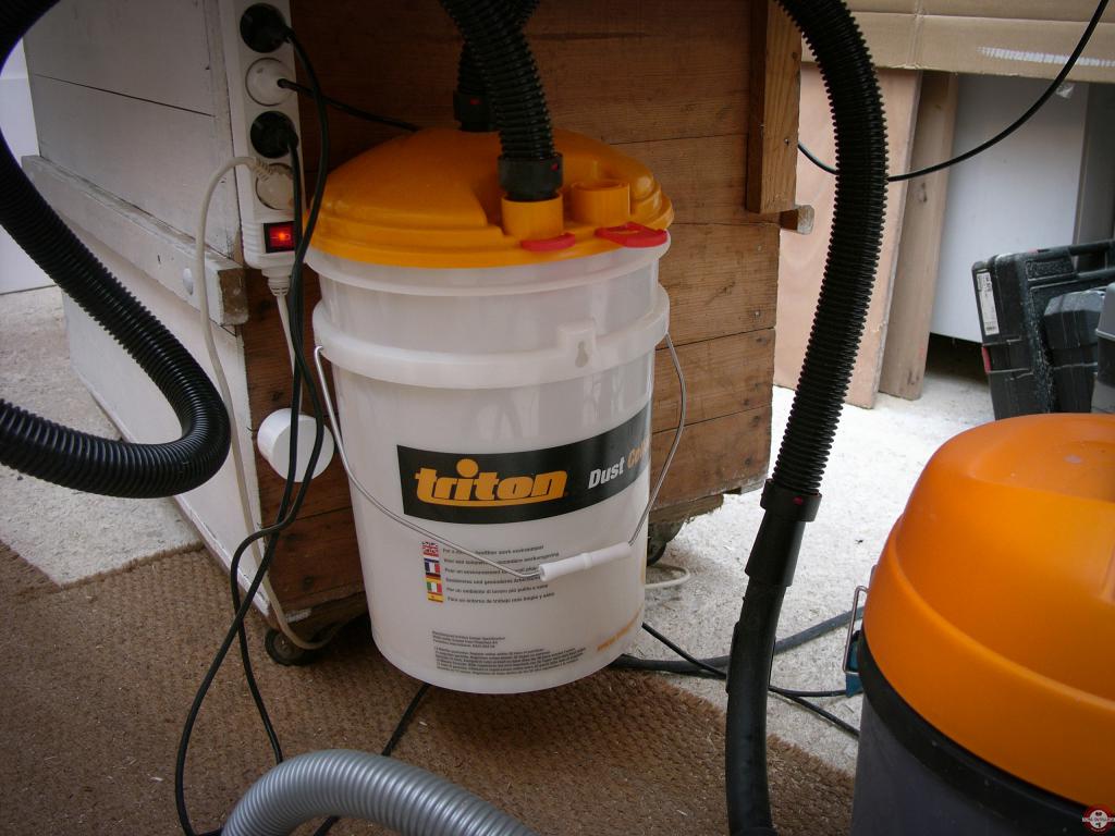 C’est pourquoi la solution intermédiaire proposée par Triton peut nous permettre de résoudre le problème à peu de frais en utilisant pratiquement n’importe quel aspirateur. Nous avons testé le collecteur de sciures Triton DCA 300.