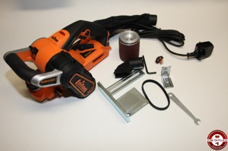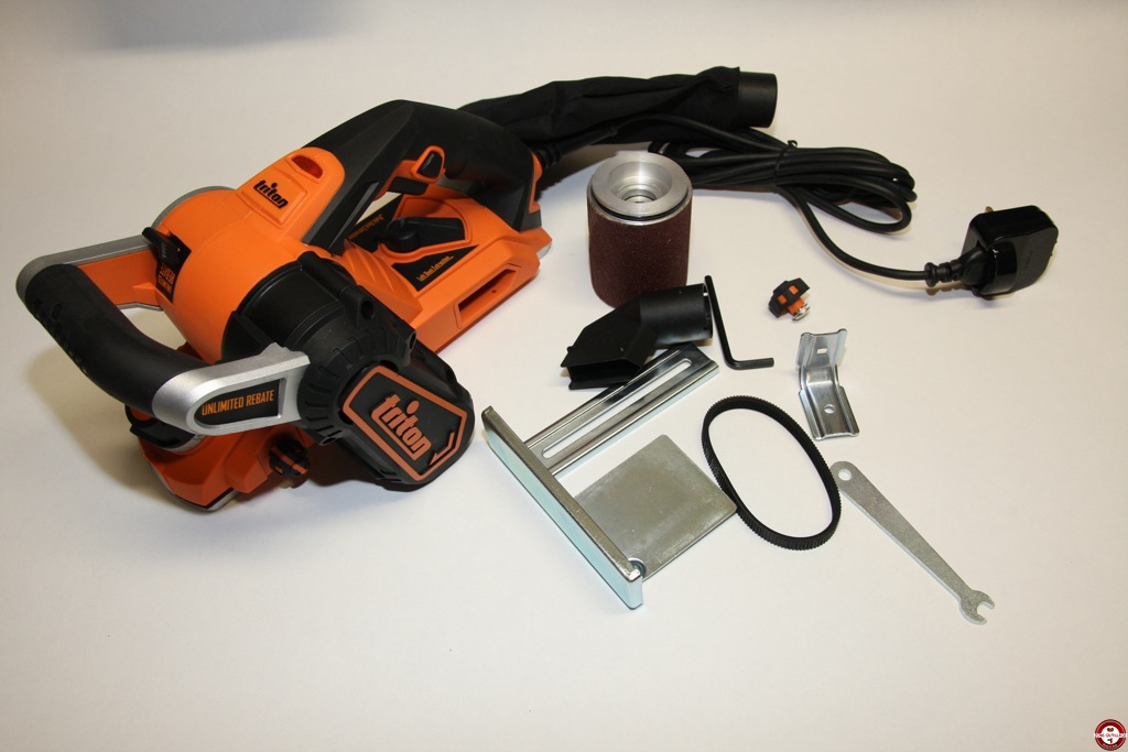Livré en carton, le rabot triton est fourni complet avec un tambour de rabotage, un tambour de ponçage, un guide parallèle, un sac d’aspiration et les clés nécessaires pour effectuer les changements de tambours.