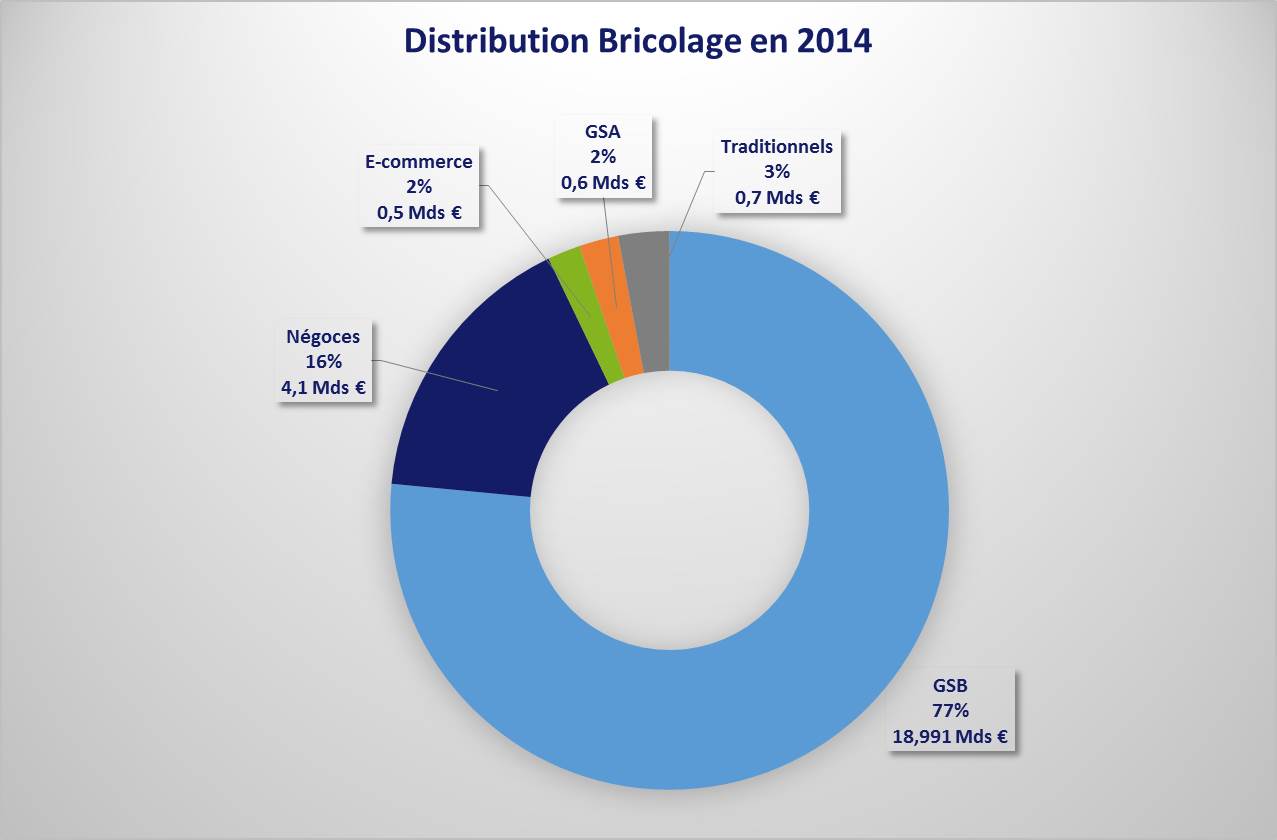 En 2014, le marché français du bricolage affiche une très légère progression de + 0,7 % pour atteindre 24,891 Mds €.