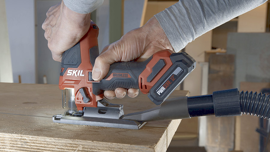 La 2433 SKIL est performante, rapide et durable grâce à son moteur Brushless sans charbons. Son éclairage LED 360° assure une ligne de coupe bien visible sans ombre pour plus de précision et de sécurité. À cela s'ajoute un souffleur de poussière pour une vue dégagée garantissant des coupes parfaites. Grâce au système « Clic », les lames peuvent être changées facilement, sans aucun outil. Grâce à son réglage Auto Speed spécial, l’outil accélère automatiquement jusqu’au régime maximal une fois que le sciage a vraiment commencé pour un démarrage maîtrisé.