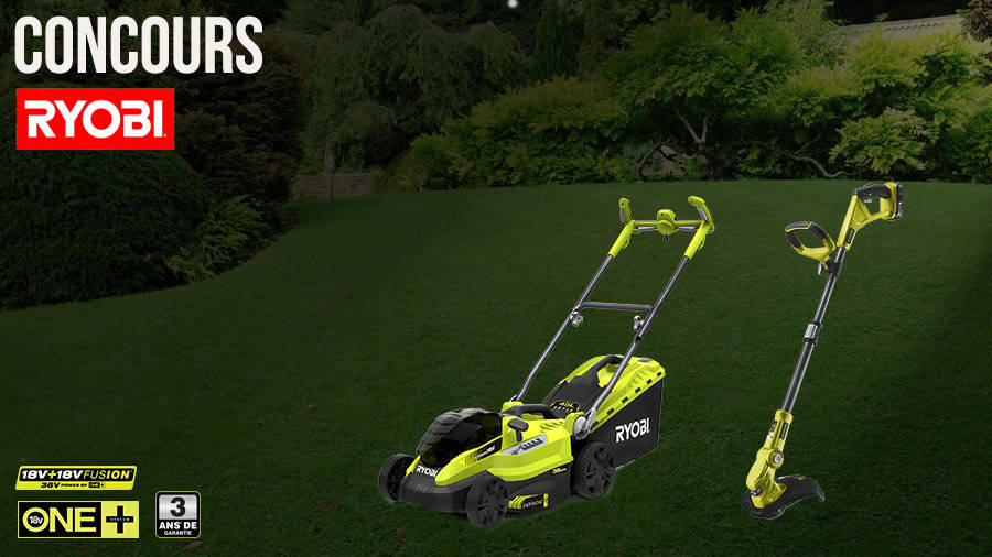 Zone Outillage et RYOBI vous proposent de jouer pour tenter de remporter une tondeuse hybride RLM18X36H250F ou un coupe-bordures RLT183225 d'une valeur de 529,98 € TTC.
