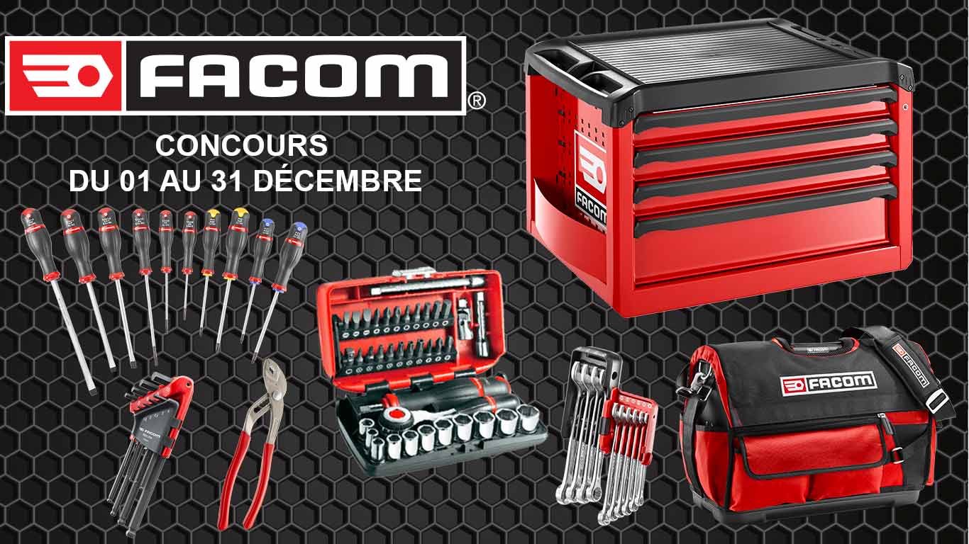 Zone Outillage et FACOM vous proposent de jouer pour tenter de remporter 1 boite textile PROBAG avec ses 27 outils, 1 coffre mobile ROLL.C4M3 et 2 coffrets NANO FACOM d’une valeur totale de 931 € TTC.