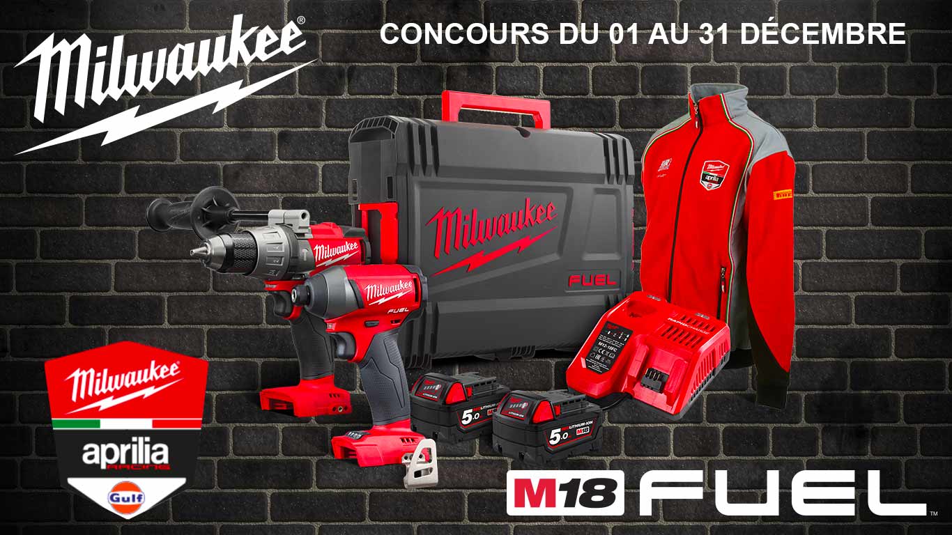 Zone Outillage et Milwaukee vous proposent de jouer pour tenter de remporter une perceuse-visseuse à percussion FUEL M18 FPD-0 et 1 visseuse à chocs FUEL M18 FID-0 avec deux batteries et un chargeur d'une valeur totale de 718,80 € TTC.