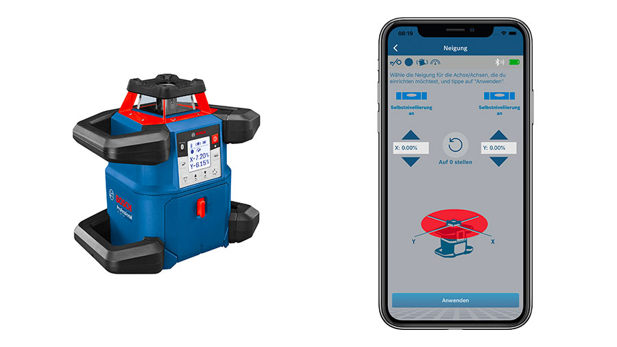 L’appareil offre une connectivité Bluetooth. Il peut être utilisé avec l’application « Levelling Remote », une application pour smartphonequi permet aux utilisateurs de régler l’inclinaison, d’étalonner l’appareil et de commander le laser à distance.