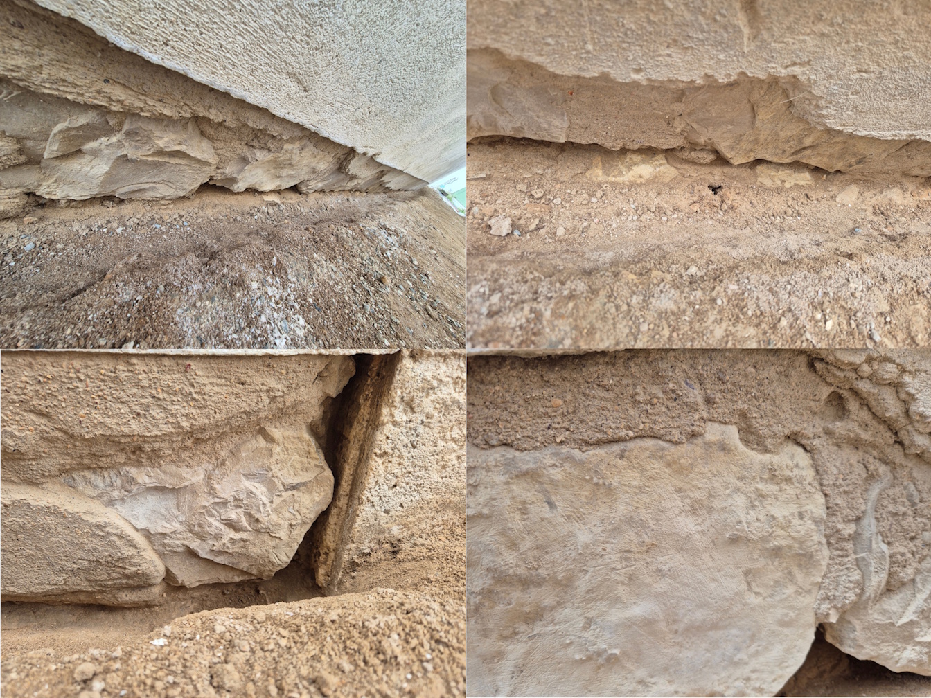 J'ai un mur extérieur en moellon (maison qui a environ 80 ans) dont je viens de décaisser une trentaine de cm dans sa partie fondation (enterrée donc) et qui présente par endroits des manques : mortier de liaison, enduit etc. (le reste du mur est sain, il est enduit avec du ciment). Ce mur est dans une petite allée entre ma maison et celle du voisin, peu de lumière/soleil. (voir photos).