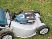 Composée de deux moteurs alimentés tous deux par une batterie 36 V 6 Ah, un moteur de traction et l’autre de coupe. Les deux batteries s’épuisent en même temps, simultanément.