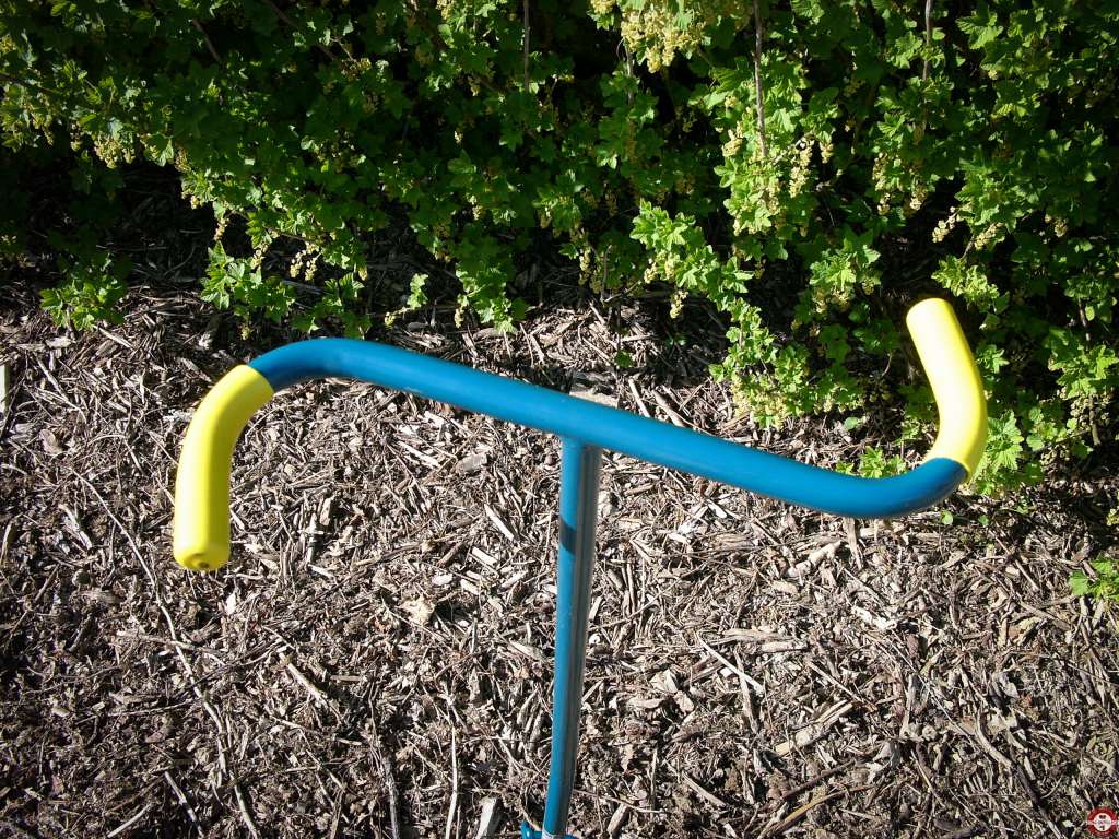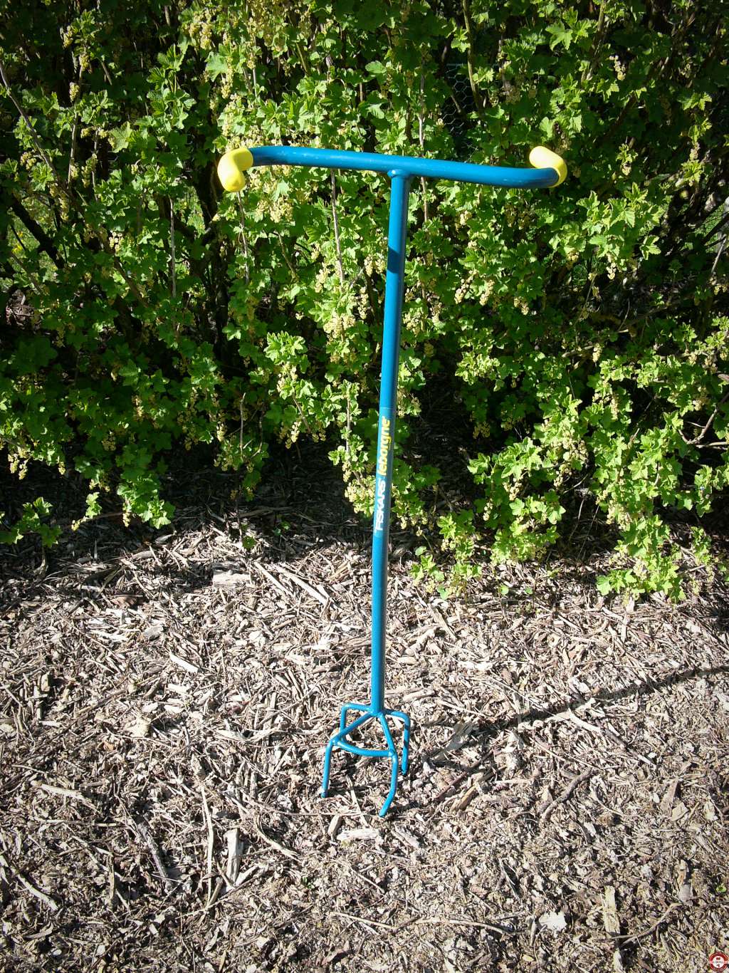 Une poignée en forme de « S » est soudée à un manche, les extrémités sont recouvertes de plastique thermoformé. Au bout du manche en tube rond sont soudées quatre griffes légèrement cintrées leur donnant une forme hélicoïdale.