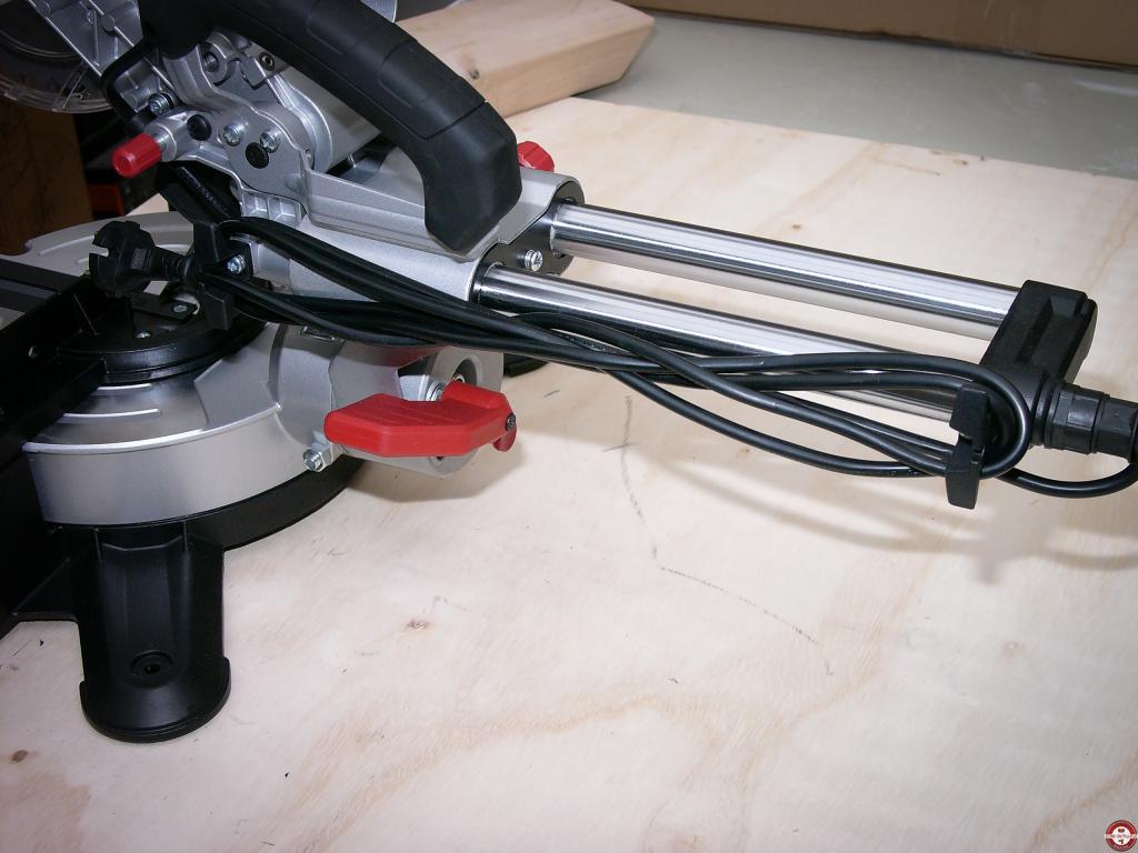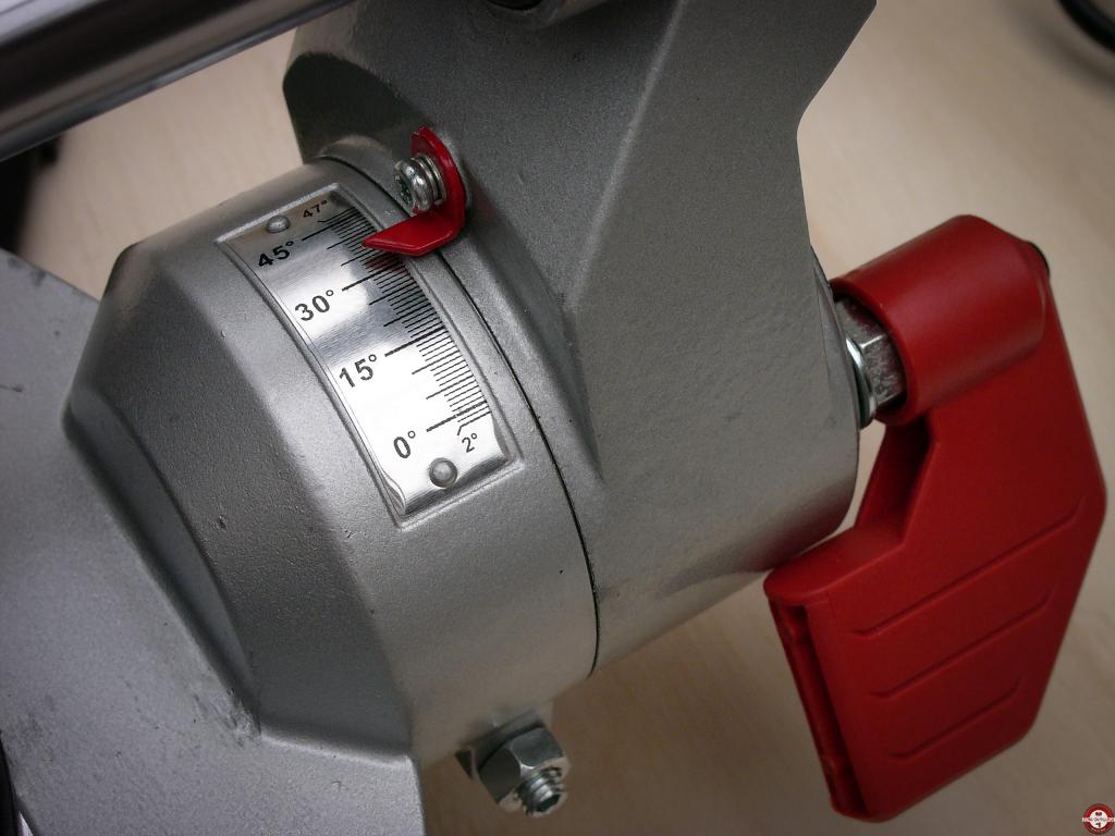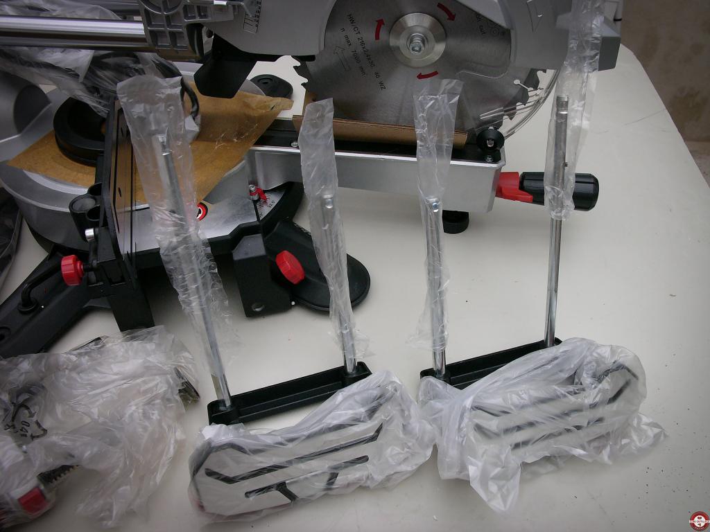 Le nouveau modéle est livré avec deux lames et la poignée de blocage de la table tournante est noire, elle était rouge sur l'ancien modéle.