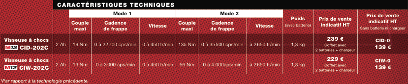 Légère, compacte et performante, la visseuse à chocs M12 CID-202C 12 V 2 Ah MILWAUKEE® propose 2 modes automatiques pour encore plus de polyvalence.